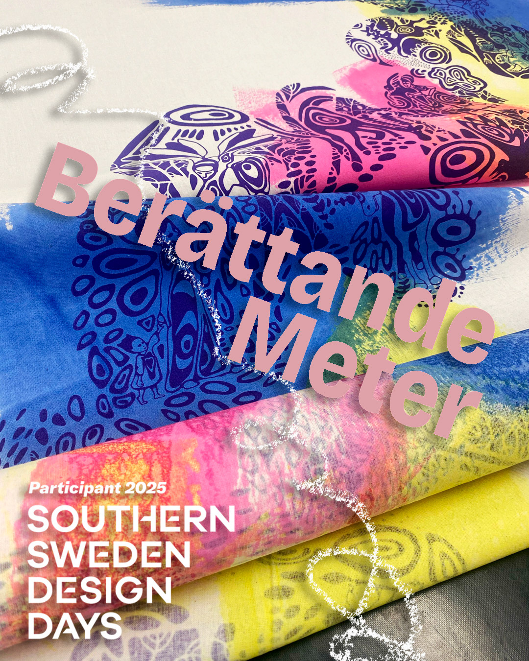 Illustrationer och screentryck, pigmentfärg, bomull. KKV Textiltryck Malmö. SSDD-25.